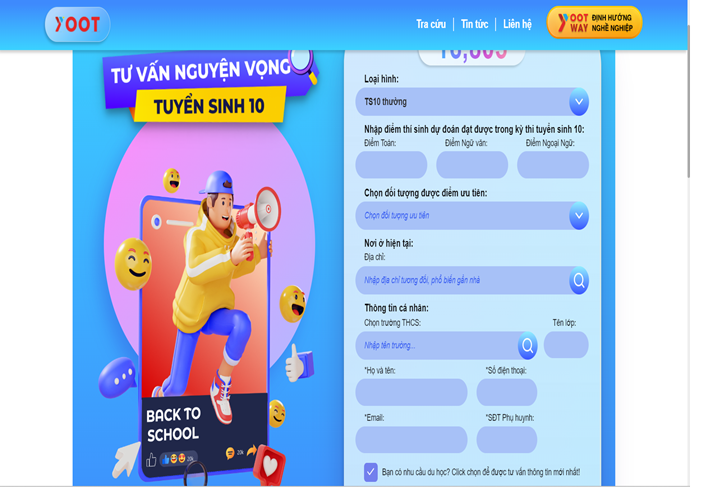 Với mong muốn giúp các em học sinh lẫn cha me học sinh có quyết định đúng đắn về việc lựa chọn nguyện vọng tuyển sinh vào lớp 10 phù hợp. Phòng Khảo thí và KĐCLGD phối hợp với công ty YOOT Education đã xây dựng xong trang web tư vấn nguyện vọng tuyển sinh: https://tuvannguyenvongts10.vn. Hệ thống sẽ cung cấp đầy đủ các thông tin của các trường THPT trên địa bàn thành phố cũng như có các công cụ hỗ trợ cha mẹ học sinh và học sinh có thể tìm hiểu và chọn lựa tham khảo các nguyện vọng tuyển sinh 10 sao cho phù hợp nhất.